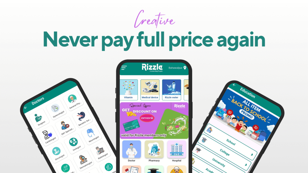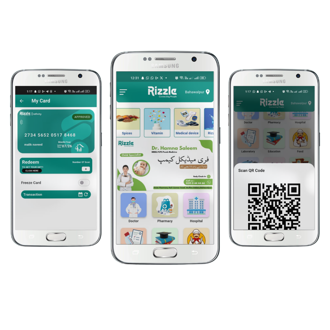 You can use your Rizzle Card at partner pharmacies, clinics, fashion outlets, agricultural stores, and other listed businesses across Pakistan.